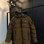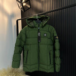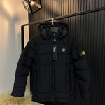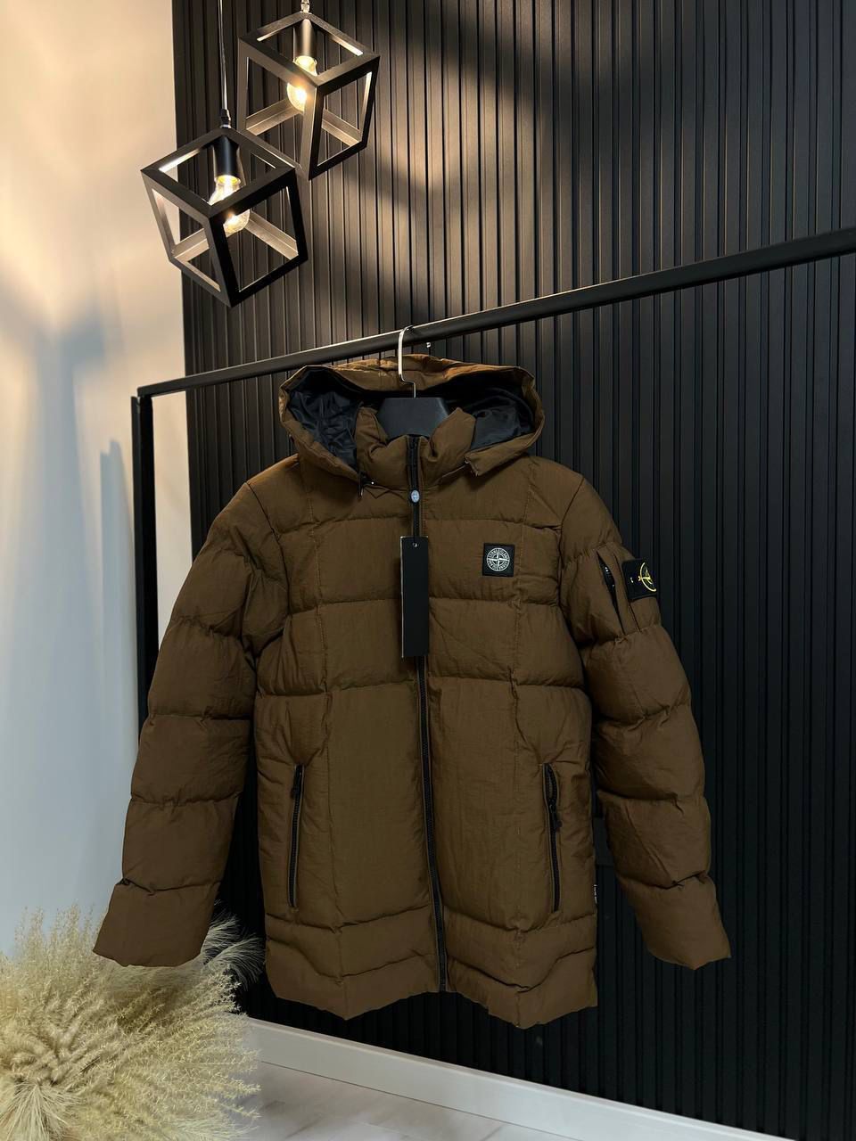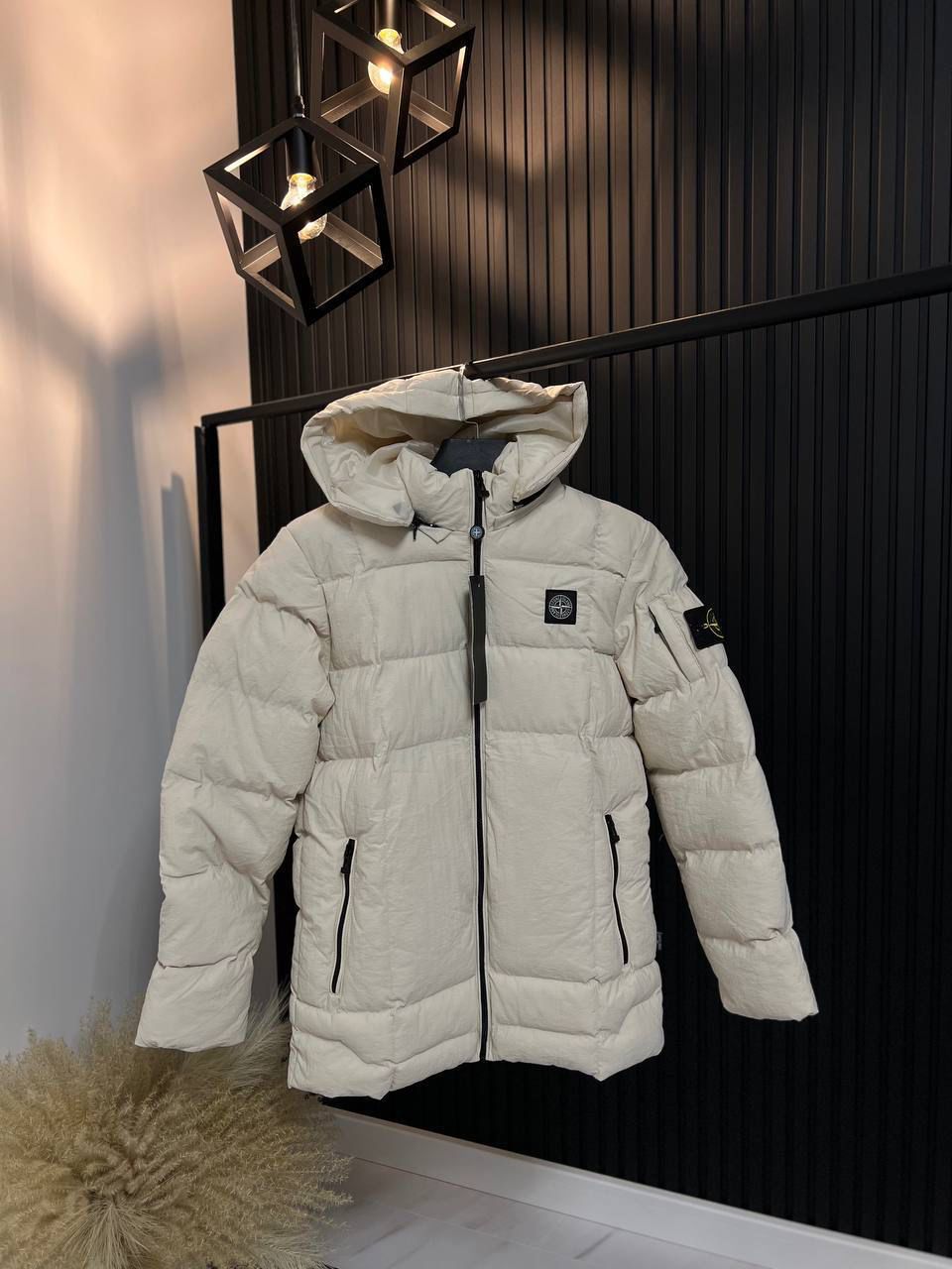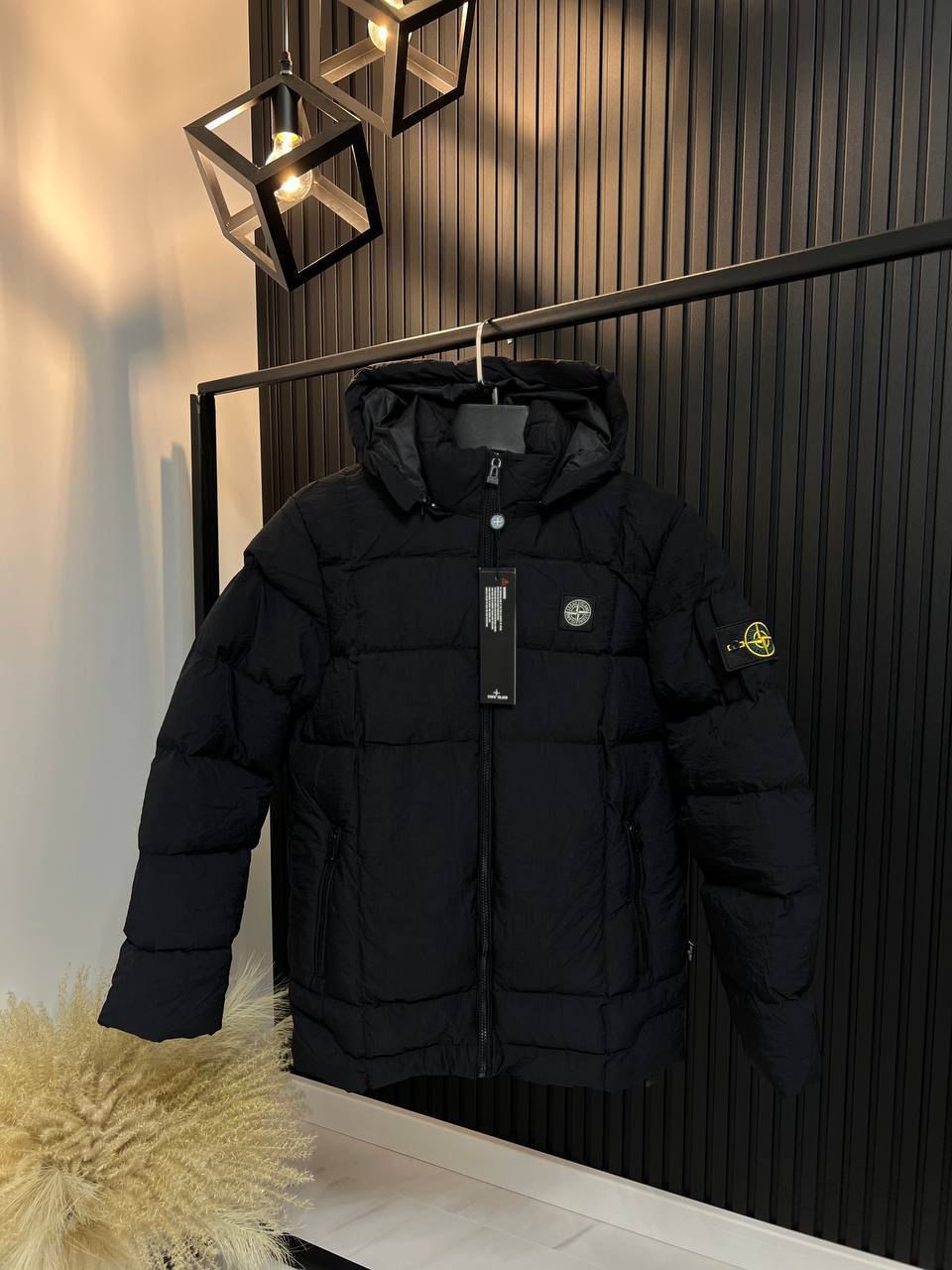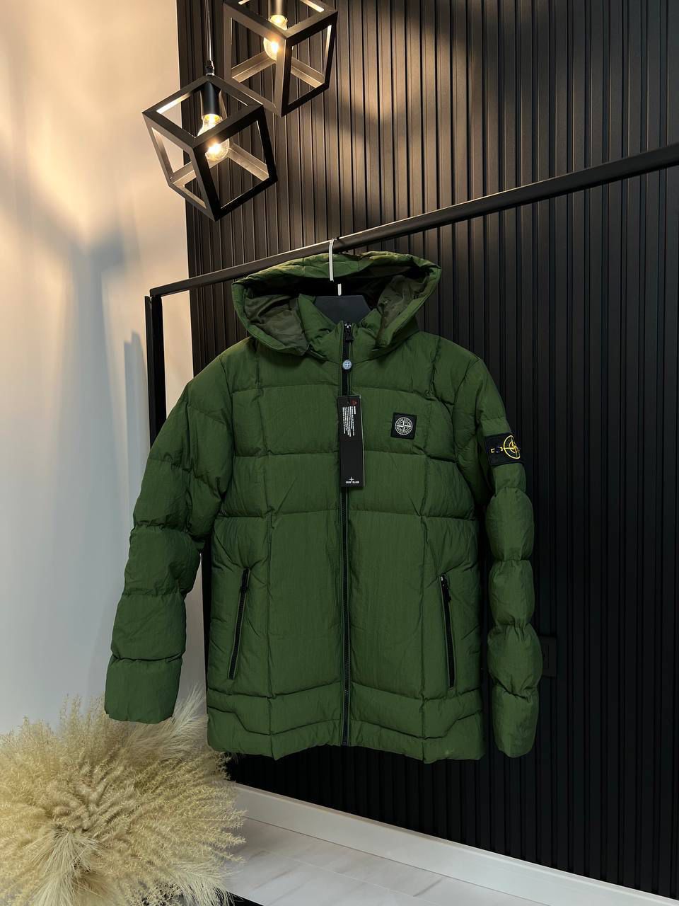This winter jacket by Stone Island combines modern design with technical functionality. Crafted from high-performance, water-repellent nylon fabric, it features a warm yet lightweight down filling for optimal insulation during cold weather.